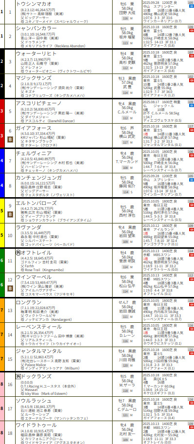※登録17頭(外国馬1頭)/フルゲート18頭